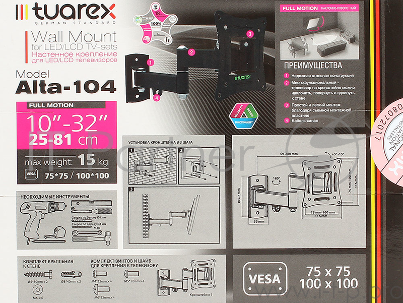 Купить кронштейн телевизора на стену Tuarex ALTA-104 black в Коврове. Забрать в магазине "Ваш Компьютер" г.Ковров пр-т Ленина 20
