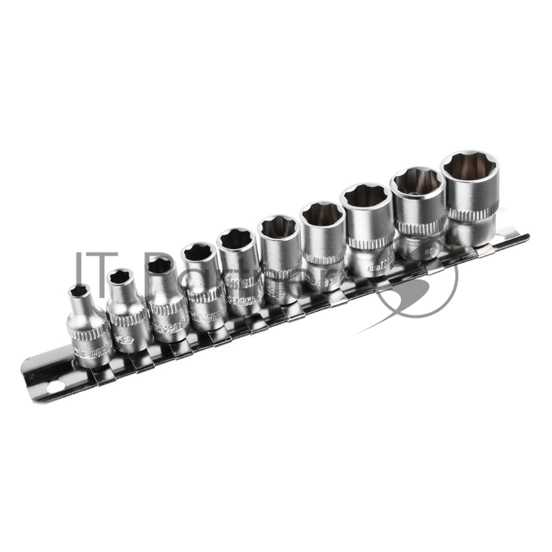 Набор универсальных торцевых головок REXANT 1/4, двенадцатигранные, CrV, 10 шт., 4-13 мм
