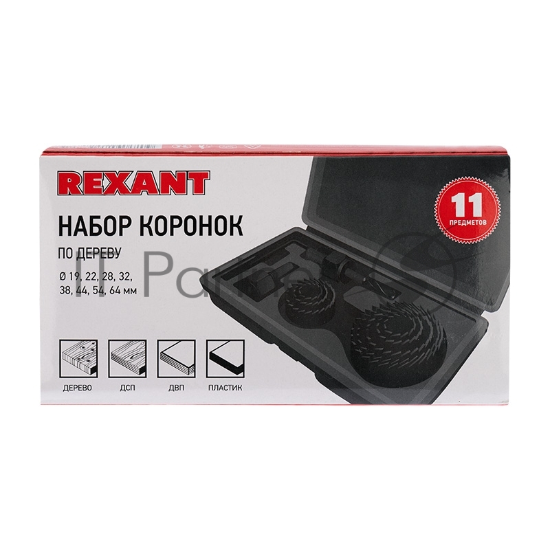 Набор коронок по дереву (19, 22, 28, 32, 38, 44, 54, 64 мм) 2 держателя с ключом REXANT
