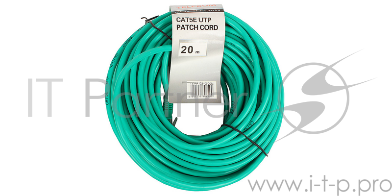 Патчкорд литой Telecom UTP кат.5е 20,0м зеленый