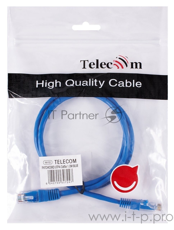 Патчкорд литой Telecom UTP кат.5е 1,0м синий