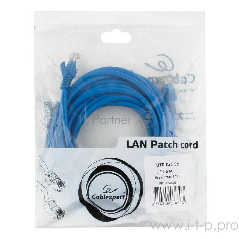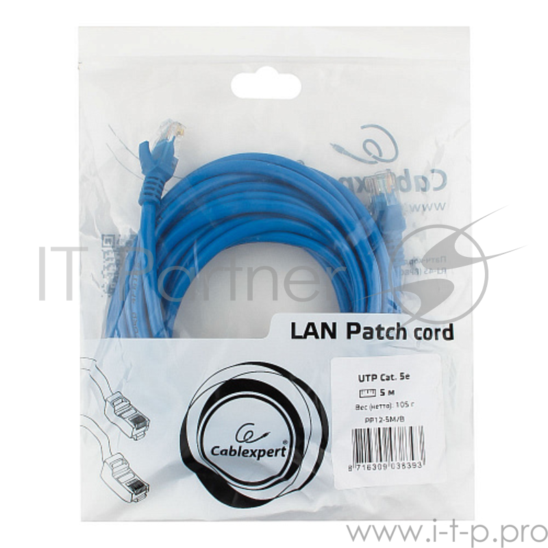 Патч-корд UTP Gembird 5e, 5м, литой, многожильный (синий)