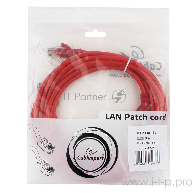 Патч-корд UTP Gembird 5e, 3м, литой, многожильный (красный)