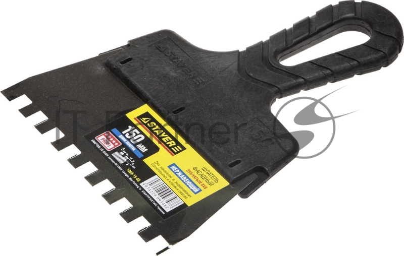 Шпатель STAYER PROFESSIONAL нержавеющий зубчатый с пластмассовой ручкой, 150мм, зуб 8х8мм