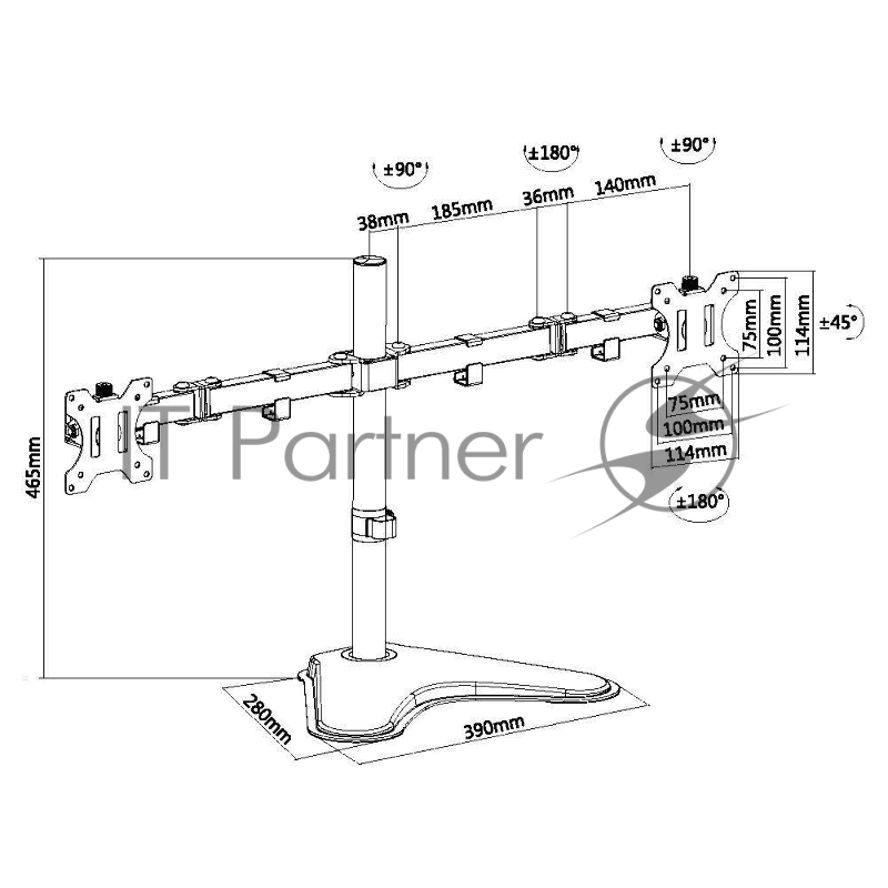 Кронштейн для мониторов Ultramounts UM706 черный 13-32 макс.8кг настольный поворот и наклон