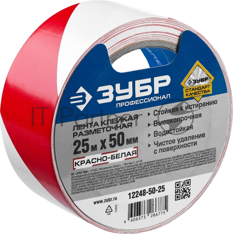 Разметочная клейкая лента ЗУБР , Профессионал 12248-50-25, цвет красно-белый, 50мм х 25м 12248-50-25