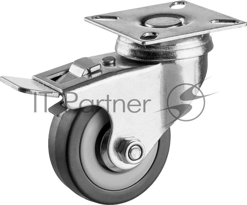 Колесо поворотное ЗУБР с тормозом d=50 мм, г/п 35 кг, резина/полипропилен, 30956-50-B