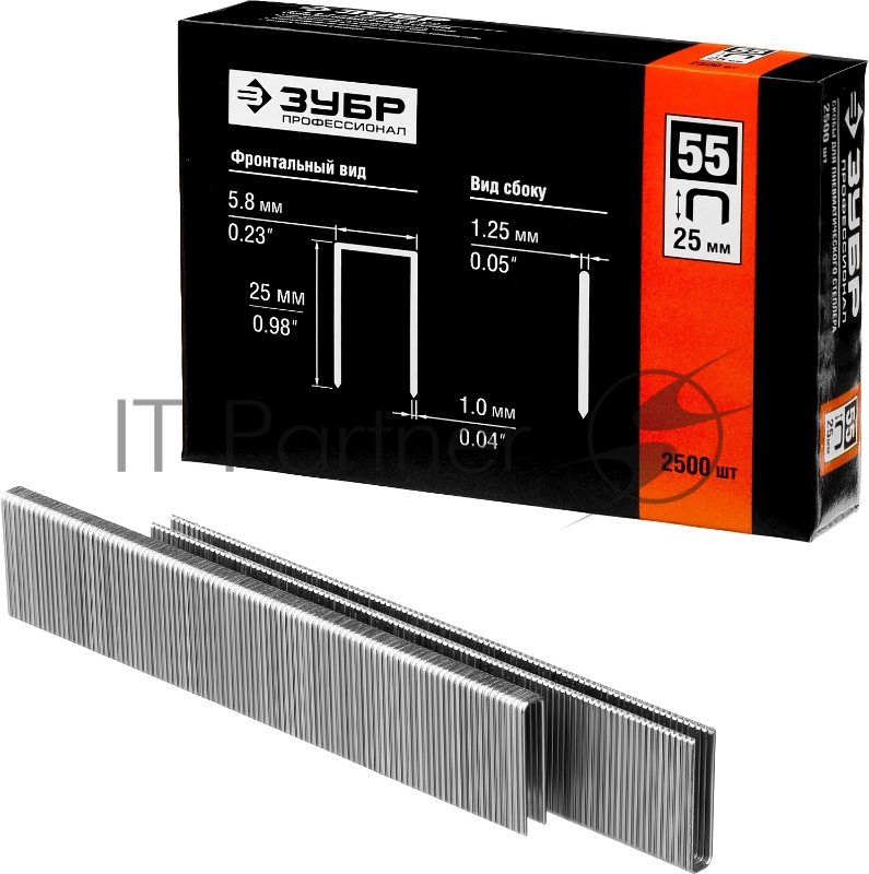 Скобы тип 55 ЗУБР , 25 мм, особотвердые, ПРОФЕССИОНАЛ 31855-25, 2500 шт 31855-25