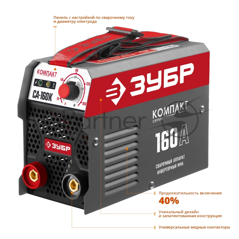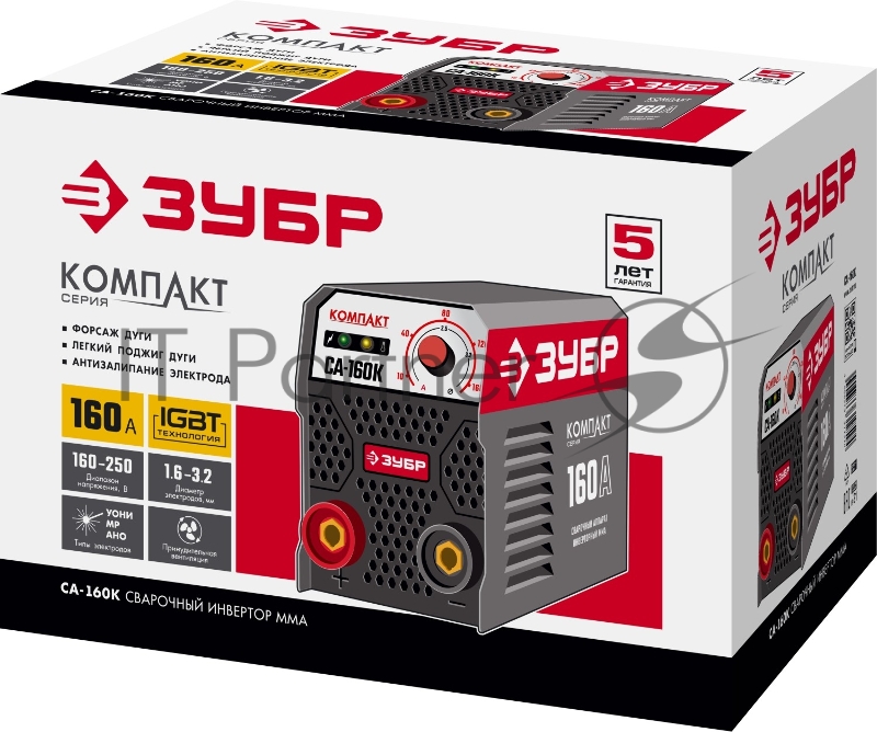 Сварочный инвертор ЗУБР СА-160К 160 А, MMA, 4800 Вт, 220 В, 1.6-3.2 мм