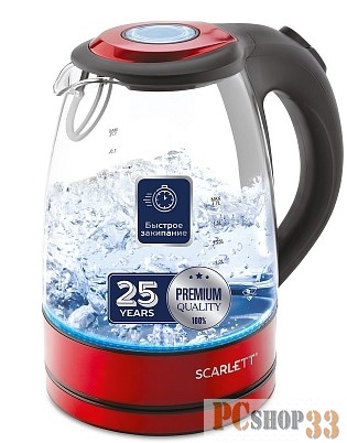 [Чайник] Scarlett, SC-EK27G99 Чайник, 2200 Вт, 1.7 л, красный