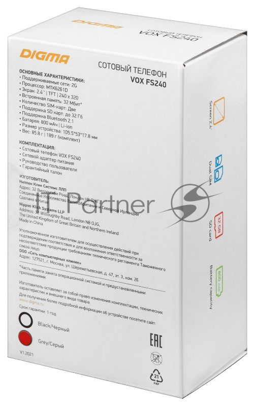 Мобильный телефон Digma VOX FS240 32Mb серый моноблок 2.44 240x320 0.08Mpix GSM900/1800
