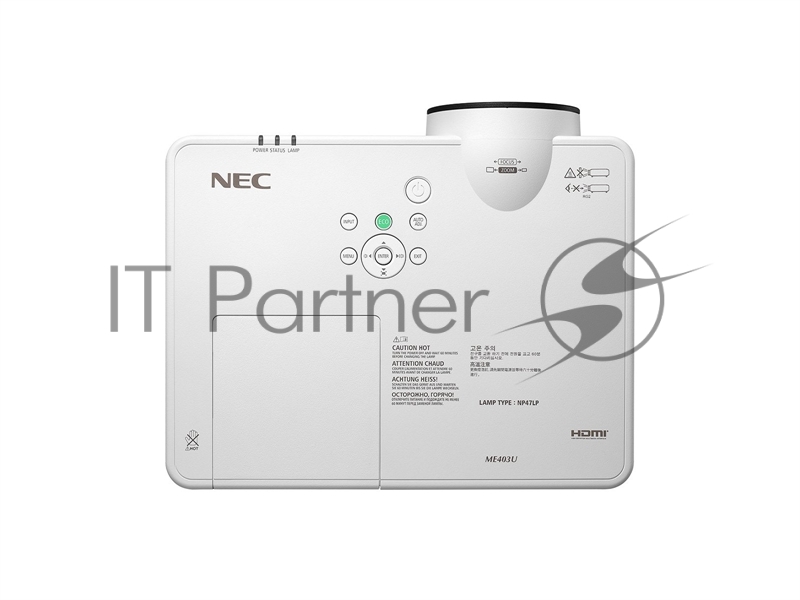 Проектор NEC [ME403U] (ME403UG), 3LCD, 4000 ANSI Lm, WUXGA, 16000:1, 1.22:1, VGA-in, 2xHDMI, video RCA, audio RCA Stereo IN x2, 3.5mm audio INx2, USB B, USB A 2.0 (Power), VGA-out, 3.5mm audioOut, RJ45, RS232, 16W, 29/37 дБ, 3,5 кг