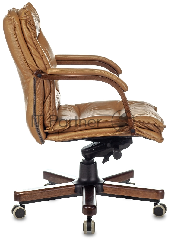 Кресло руководителя Бюрократ T-9927WALNUT-LOW горчичный кожа низк.спин. крестовина металл/дерево