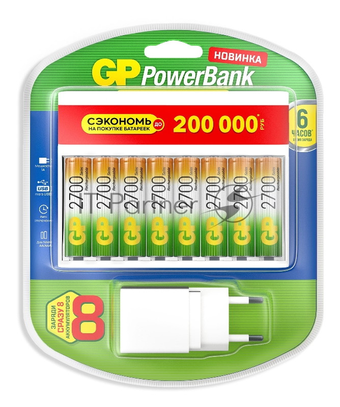 Аккумулятор + зарядное устройство GP PowerBank 270AAHC/CPBXL-2CR8 AA NiMH 2700mAh (8шт) блистер