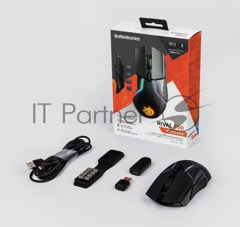 Игровая беспроводная мышь SteelSeries Rival 650 черная (2,4 ГГц, 7 кнопок, TrueMove3+, 12000 dpi, RGB подсветка, USB, ААА)
