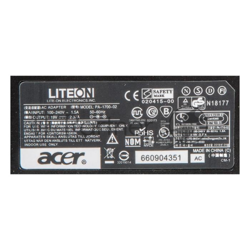 блок питания для ноутбука Acer 19V, 2.37А, 45W, 3.0x1.1 с кабелем