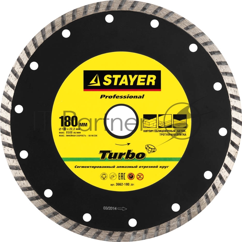 Диск алмазный отрезной сегментированный STAYER Professional TURBO 180 мм, по бетону, кирпичу, плитке