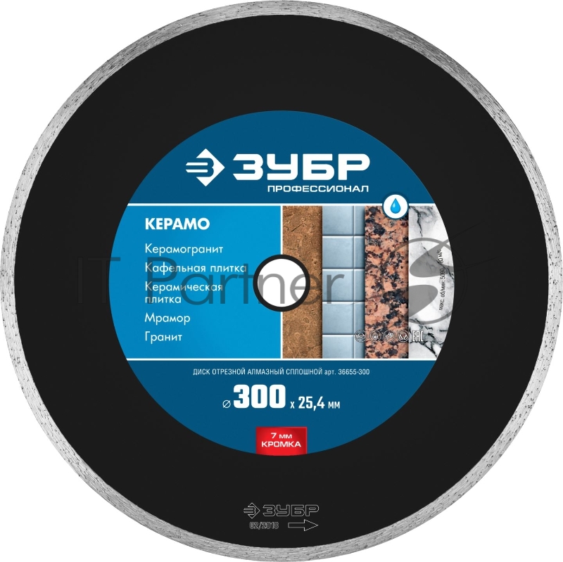 Диск алмазный отрезной КЕРАМО-25 300 мм, сплошной по керамограниту, мрамору, плитке, ЗУБР Профессионал