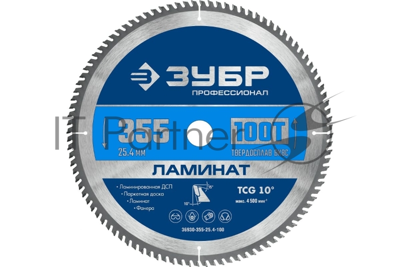 Диск пильный по ламинату ЗУБР Ламинат 355х25.4мм 100Т
