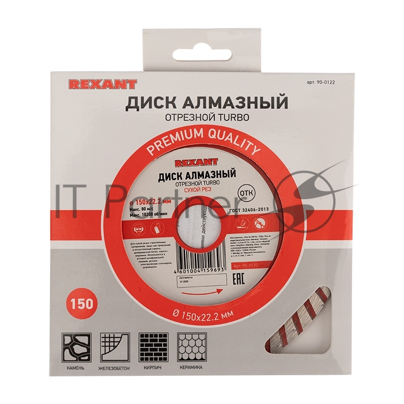 Диск алмазный отрезной Turbo 150x22.23х2,4x10 мм REXANT
