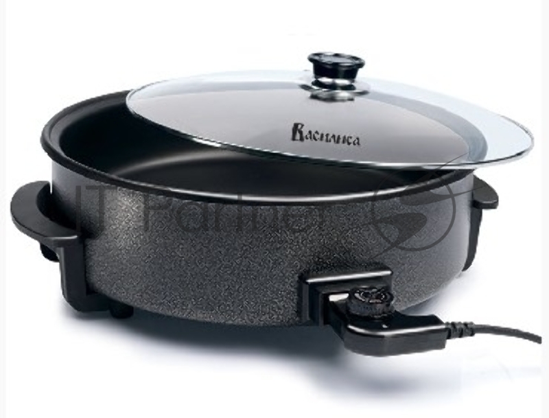 Электросковорода ВАСИЛИСА ВА-802 Номинальная мощность 1500 Вт Максимальная температура нагрева 280°С Диаметр 42 см Глубина 9 см Описание Электросковорода предназначена для тепловой обработки продуктов в бытовых условиях - для жарки мяса, рыбы, пассер
