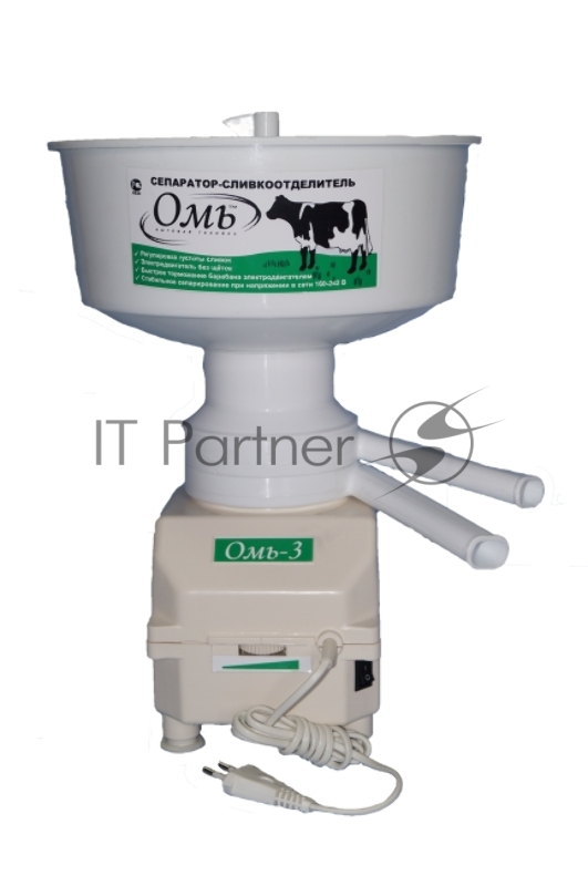 Сепаратор молока Омь-3, 50 Вт, производительность 50 л/час, 8000-12000 об/мин, индукционный двигатель (без щеток), регулировка жирности сливок