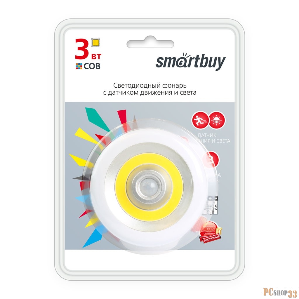 Smartbuy Фонари Smartbuy SBF-CL3-MS Светодиодный фонарь с датчиком движения и света 3 Вт COB, 3*AA