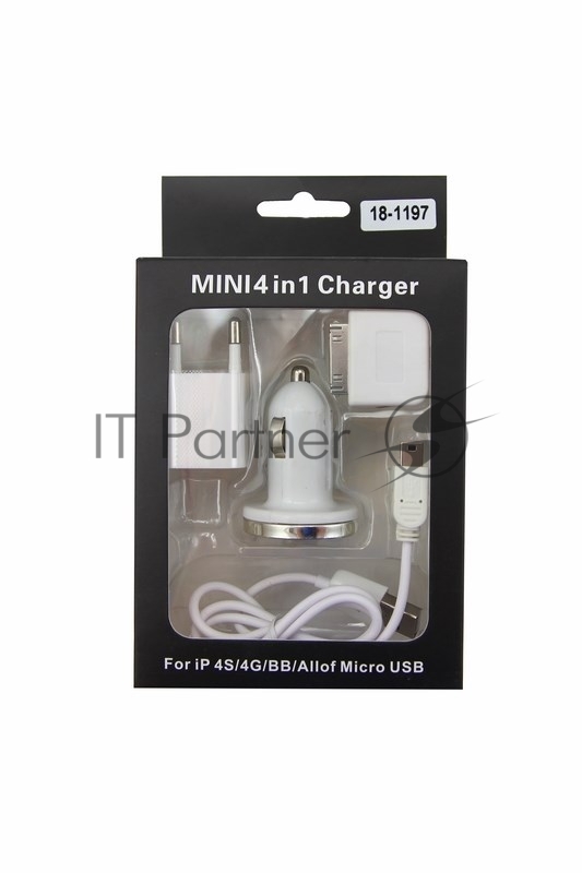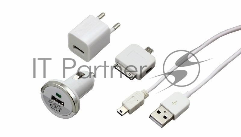 Комплект СЗУ, АЗУ, кабель miniUSB-USB, переходник microUSB 30 pin белый