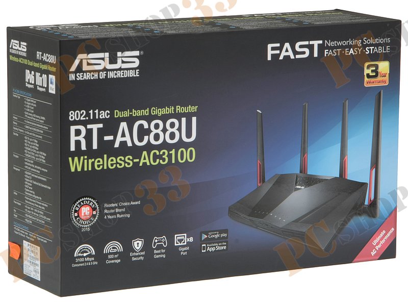 Беспроводной маршрутизатор ASUS RT-AC88U WiFi 2.1Гбит/сек. + 8 портов LAN 1Гбит/сек. + 1 порт WAN 1Гбит/сек. + 1 порт USB2.0 + 1 порт USB3.0