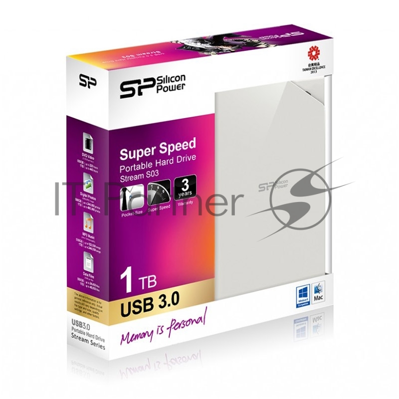 Жесткий диск Silicon Power USB 3.0 1Tb S03 SP010TBPHDS03S3W Stream 2.5 белый