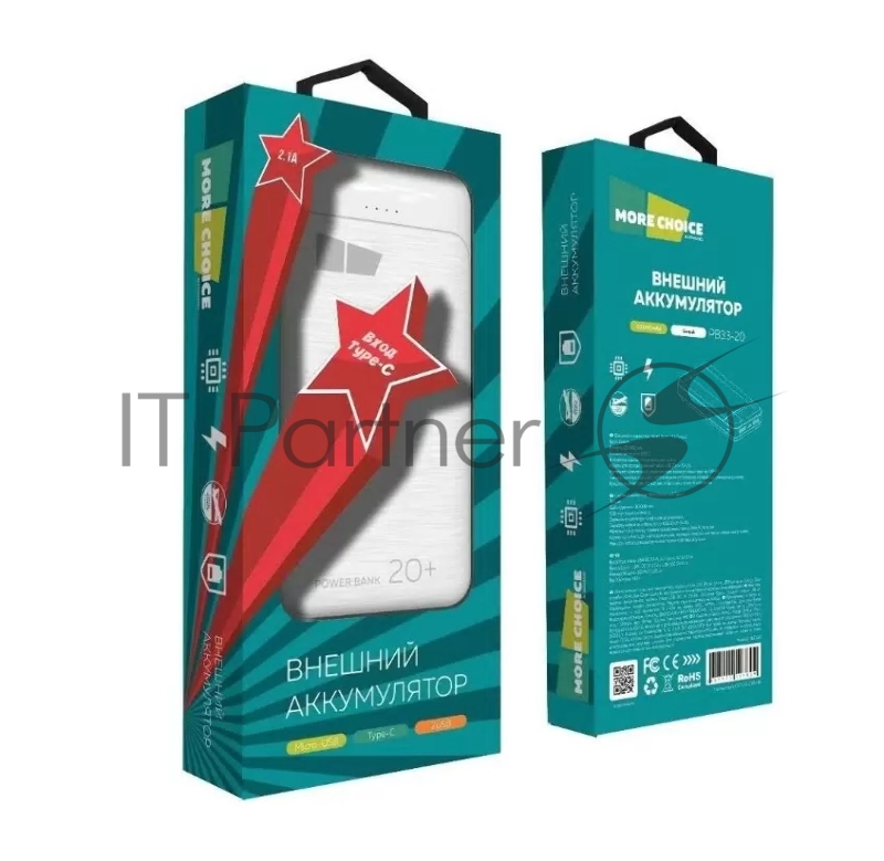 Купить Power bank MORE CHOICE PB33-20W в Коврове. Заказать на сайте. Забрать в "Ваш Компьютер" г.Ковров пр-т Ленина 20