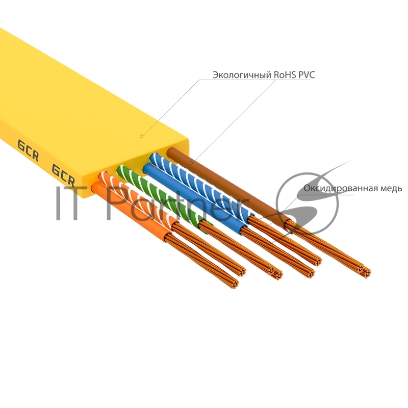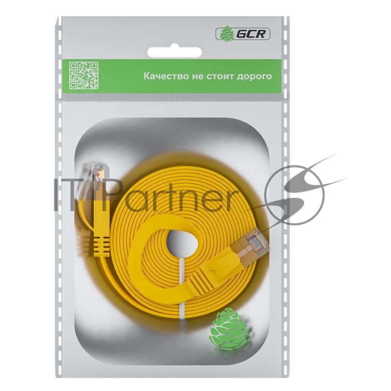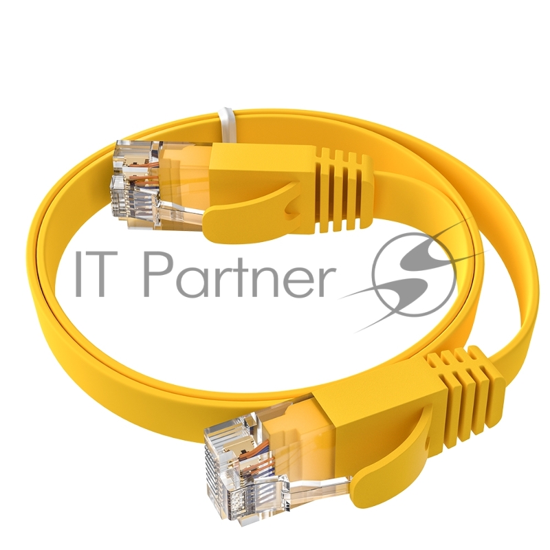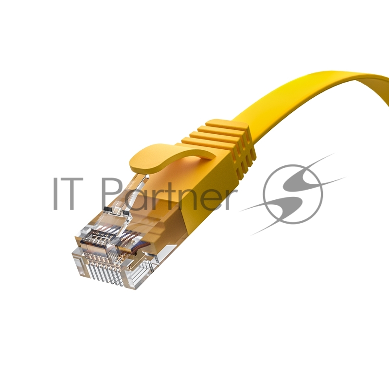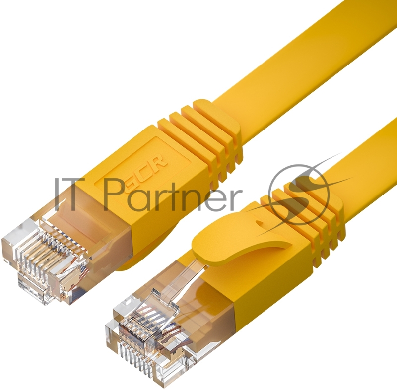 Патч-корд GCR PROF плоский прямой 2.0m, UTP медь кат.6, желтый, 30 AWG, ethernet high speed 10 Гбит/с, RJ45, T568B, GCR-52827