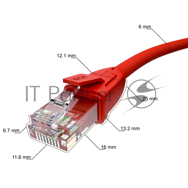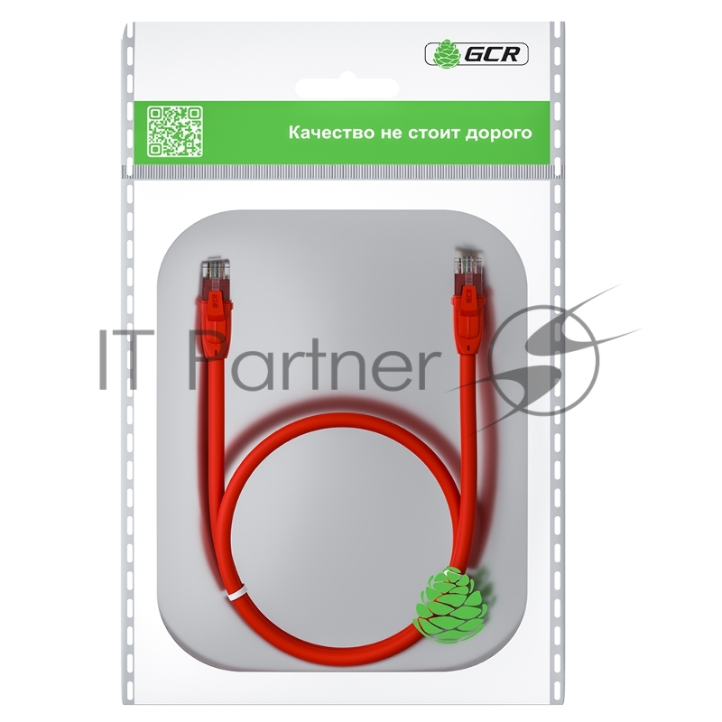 Патч-корд GCR прямой 5.0m UTP кат.6, красный, 24 AWG, литой, ethernet high speed, RJ45, T568B