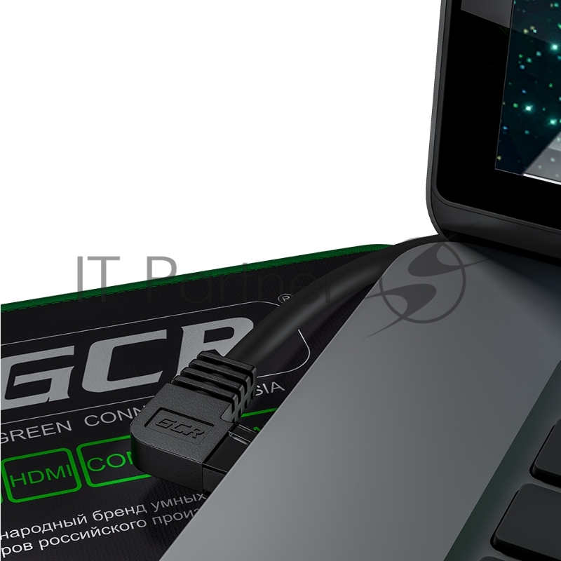 Патч-корд GCR прямой 1.0m UTP кат.5e, черный, левый угол, литой, ethernet high speed, RJ45, T568B