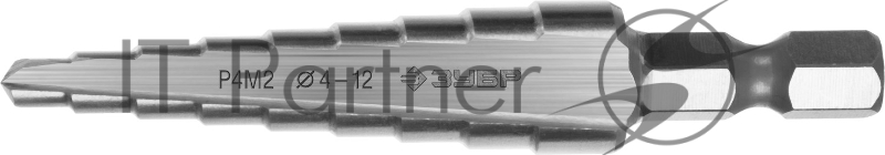 Сверло Зубр МАСТЕР ступенчатое по сталям и цвет.мет., быстрорежущая сталь, d=4-12мм, 9ступ.d=4-12, L- 65 мм,шестигран. хвост.1/4 29665-4-12-9 29665-4-12-9