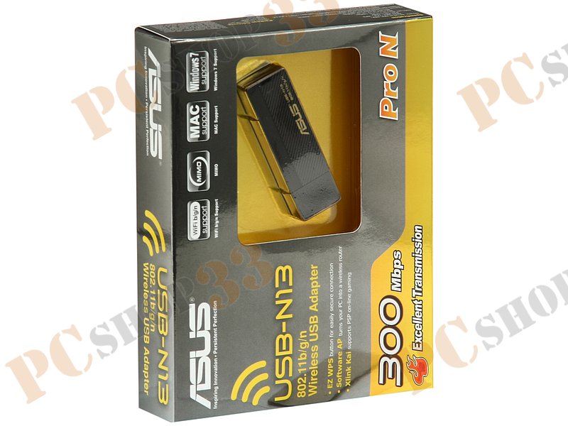 Сет.адаптер Wi-Fi 300Мбит/сек. ASUS USB-N13 802.11b/g/n (USB2.0)