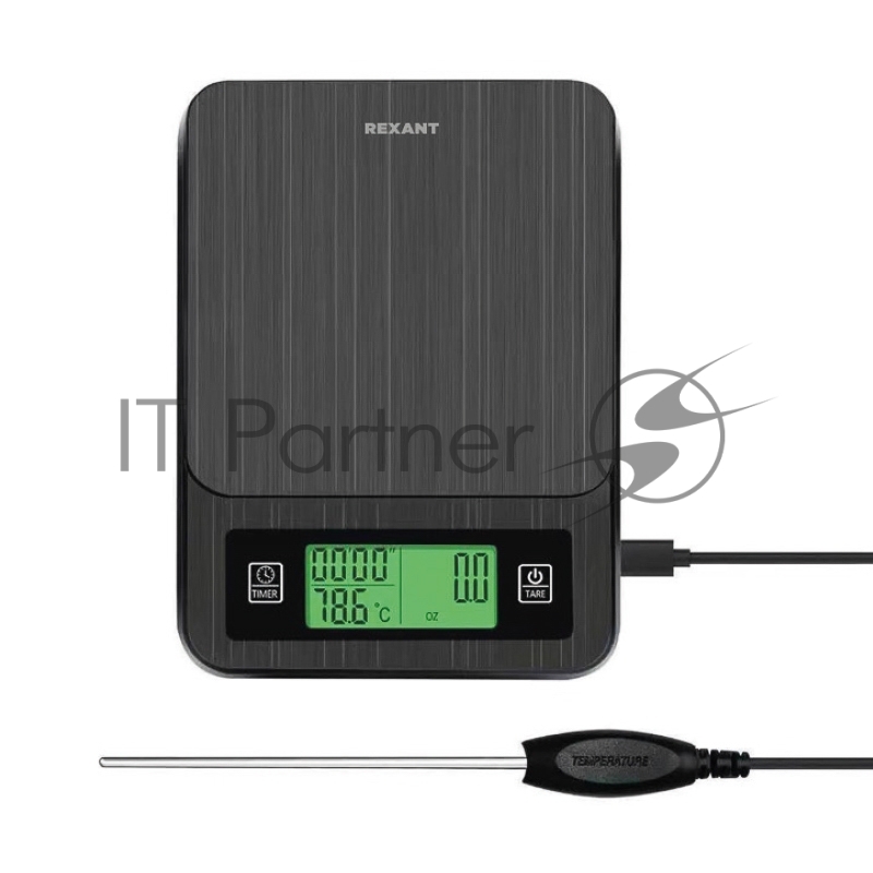 Весы кухонные электронные, платформа из нержавеющей стали/термощуп/до 3 кг REXANT
