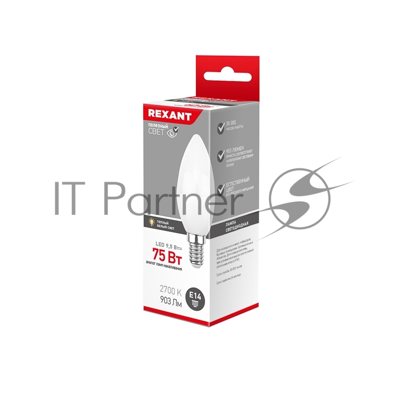 Rexant 604-023 Лампа светодиодная Свеча (CN) 9,5 Вт E14 903 лм 2700 K теплый свет