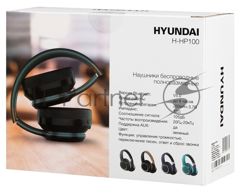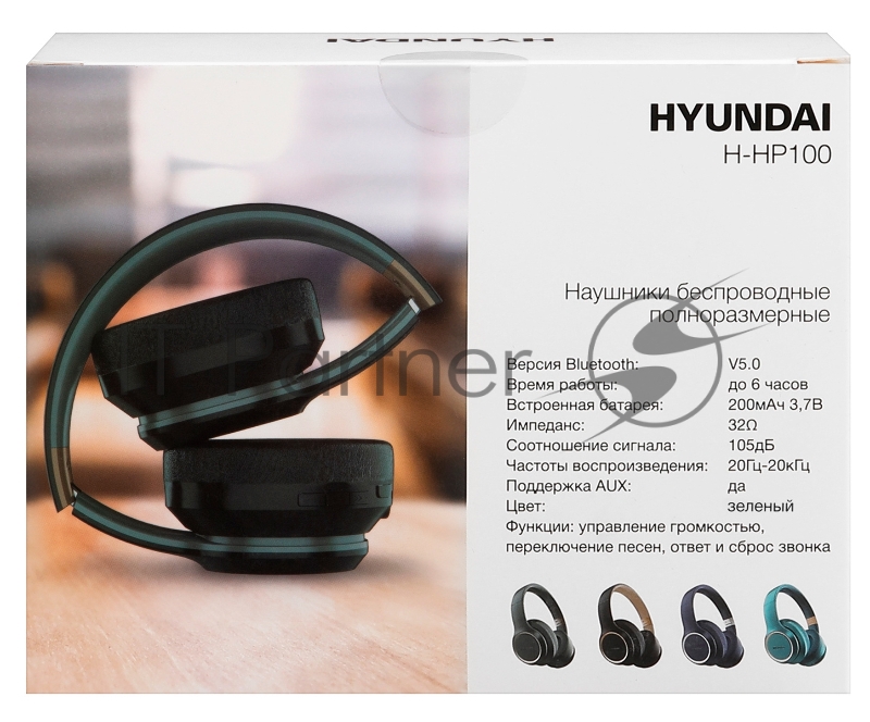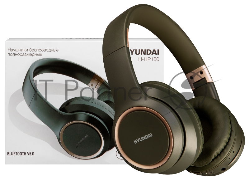 Гарнитура накладные Hyundai H-HP100G темно-зеленый беспроводные bluetooth оголовье
