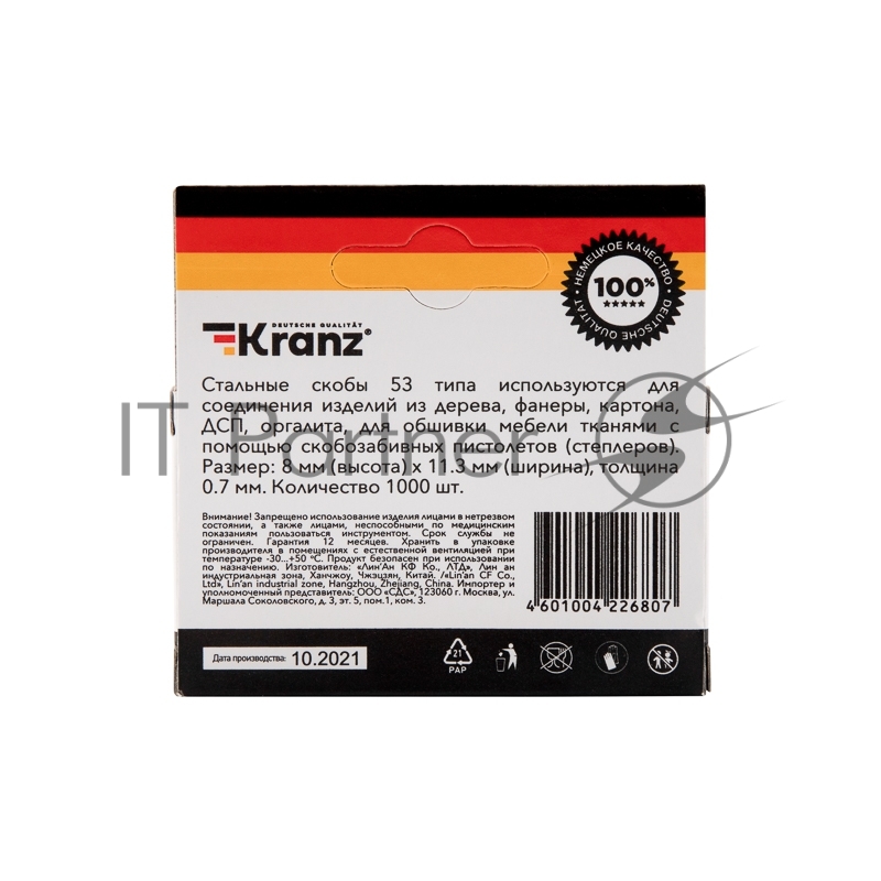 Скобы для мебельного степлера KRANZ 8 мм, тип 53, 1000 шт.