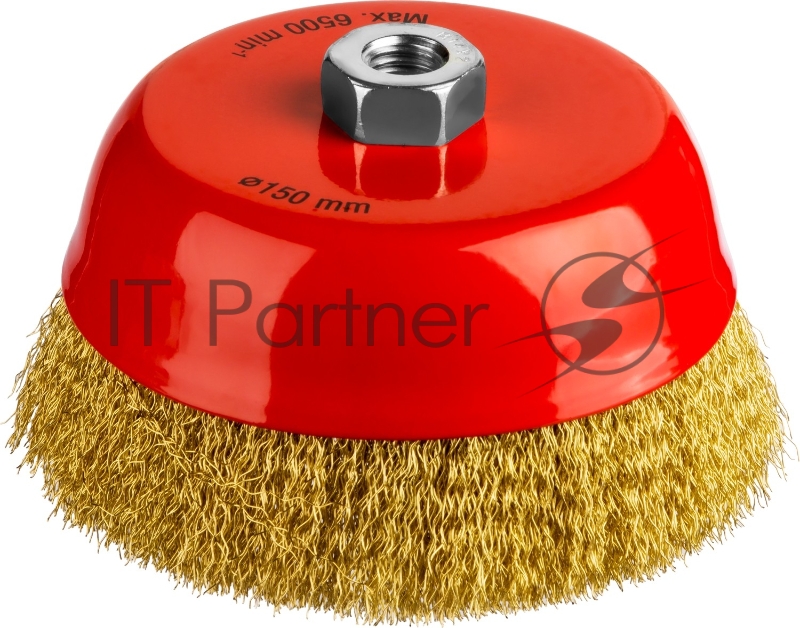 Щетка чашечная для УШМ, витая стальная латунированная проволока 0,3 мм, d=150 мм, MIRAX 35142-150