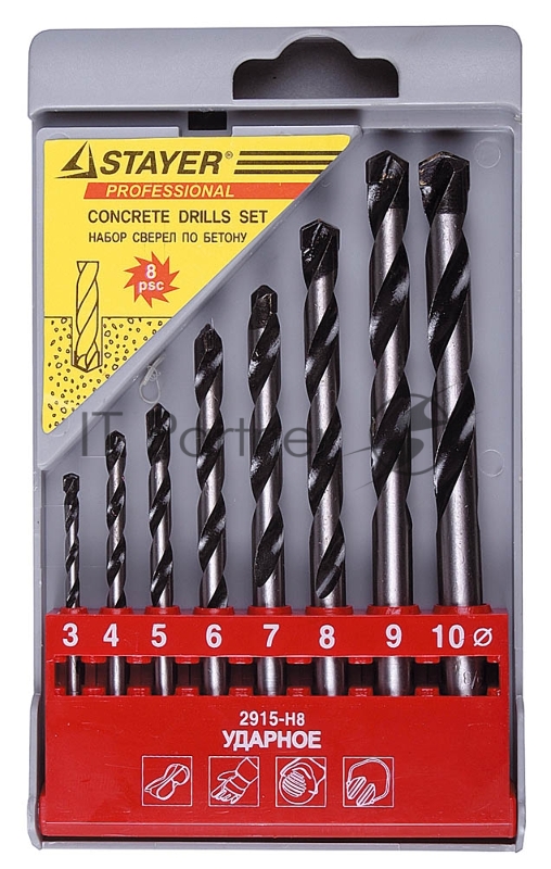 Набор STAYER Свёрла PROFI по бетону, ударные 3, 4, 5, 6, 7, 8, 9, 10мм, 8 предметов