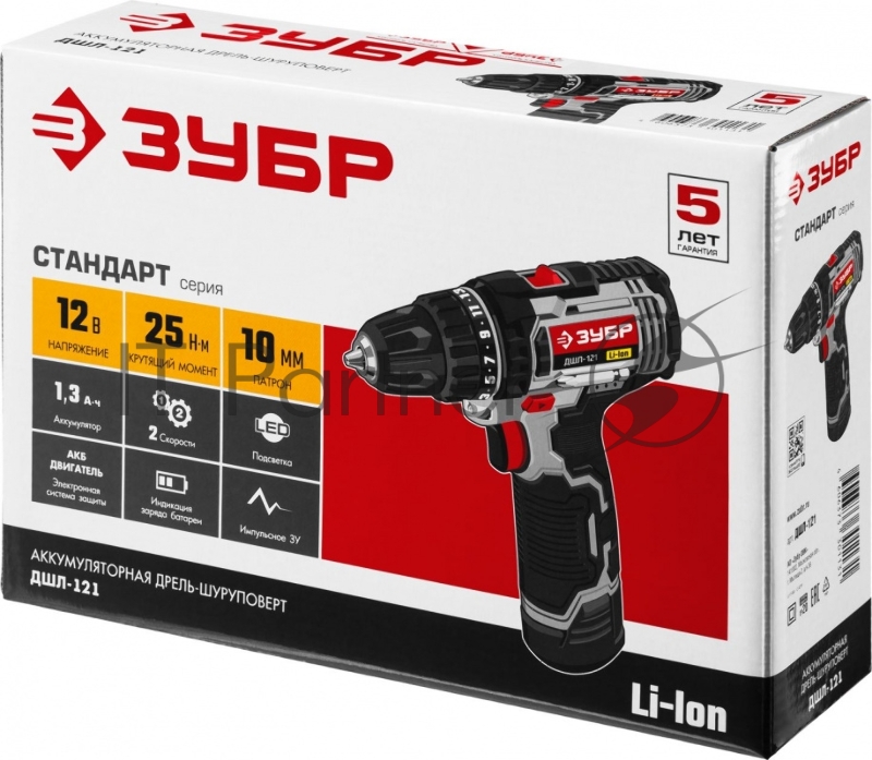 Дрель-шуруповерт Зубр ДШЛ-121 аккум. патрон:быстрозажимной