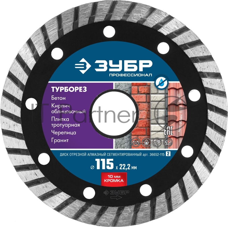 Диск алмазный отрезной сегментированный по бетону, кирпичу, граниту, ЗУБР Профессионал ТУРБОРЕЗ 115 мм