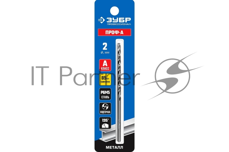 Сверло по металлу, ЗУБР ПРОФ-А 2,0х85мм, Удлиненное сталь Р6М5, класс А