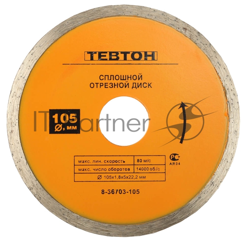Диск алмазный отрезной сплошной по керамограниту, мрамору, плитке, ТЕВТОН 110 мм