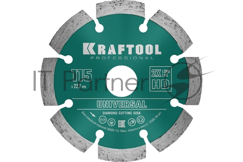 Диск алмазный отрезной KRAFTOOL UNIVERSAL 115 мм, сегментный по железобетону, высокопрочному бетону
