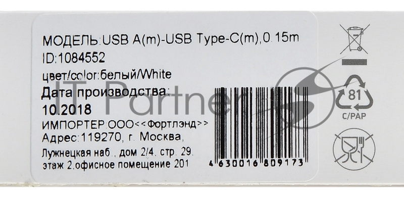 Кабель Digma USB A (m) USB Type-C (m) 0.15м белый