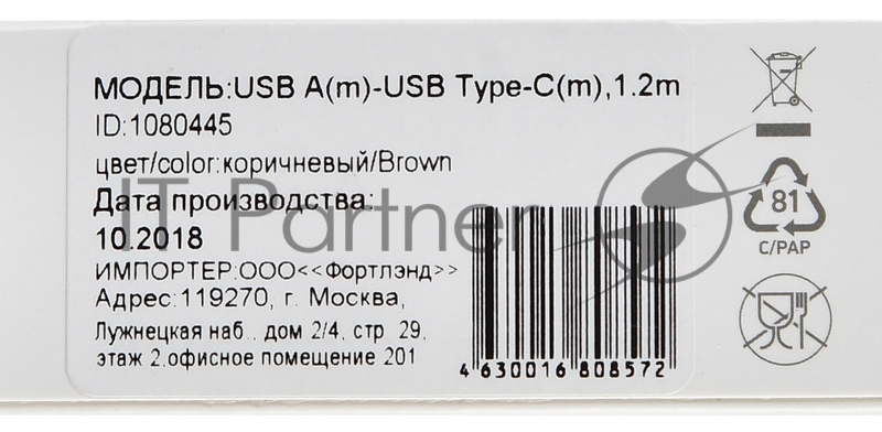 Кабель Digma USB A (m) USB Type-C (m) 1.2м коричневый