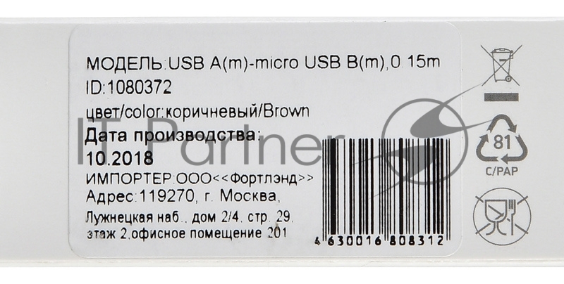 Кабель Digma USB A (m) micro USB B (m) 0.15м коричневый